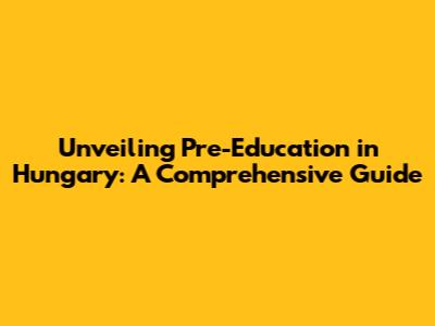 Unveiling Pre-Education In Hungary: A Comprehensive Guide