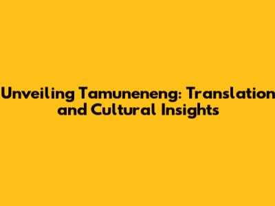 Unveiling Tamuneneng: Translation And Cultural Insights