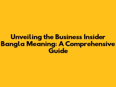 Unveiling The Business Insider Bangla Meaning: A Comprehensive Guide
