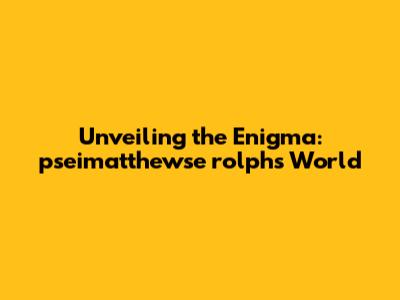 Unveiling The Enigma: Pseimatthewse Rolph's World
