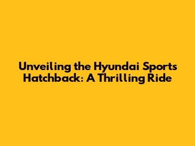 Unveiling The Hyundai Sports Hatchback: A Thrilling Ride