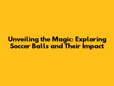 Unveiling The Magic: Exploring Soccer Balls And Their Impact