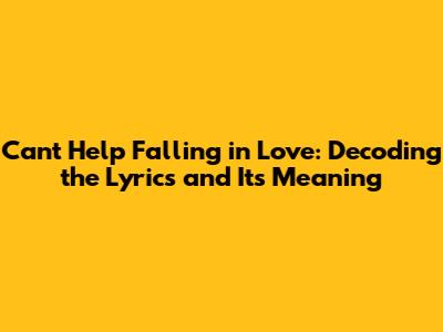Unveiling The Meaning Of 'Can't Help Falling In Love'