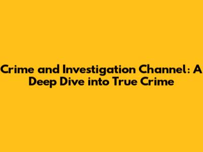 Unveiling The Mysteries: Crime And Investigation Channel Deep Dive