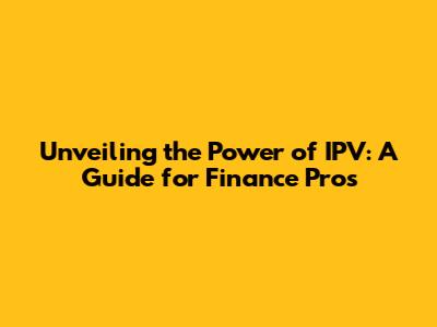 Unveiling The Power Of IPV: A Guide For Finance Pros