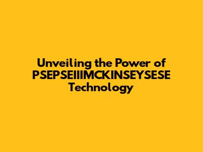 Unveiling The Power Of PSEPSEIIIMCKINSEYSESE Technology