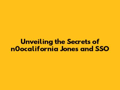 Unveiling The Secrets Of N0ocalifornia Jones And SSO