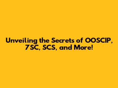 Unveiling The Secrets Of OOSCIP, 7SC, SCS, And More!