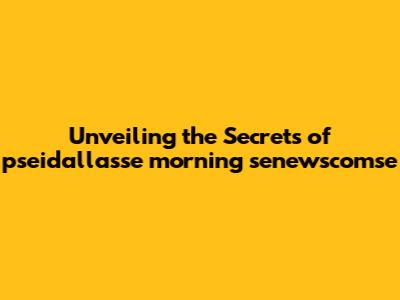 Unveiling The Secrets Of Pseidallasse Morning Senewscomse