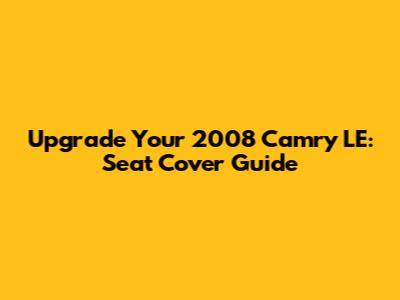 Upgrade Your 2008 Camry LE: Seat Cover Guide