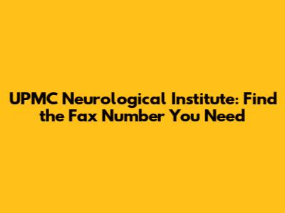 Why You Might Need the UPMC Neurological Institute Fax Number