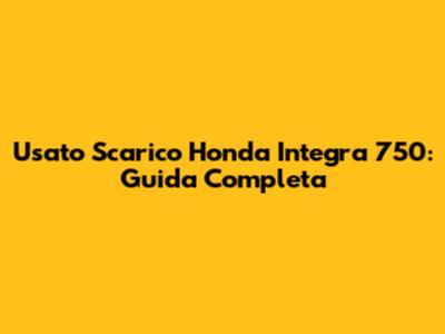 Usato Scarico Honda Integra 750: Guida Completa