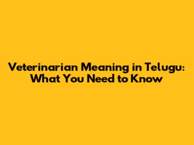 Veterinarian Meaning In Telugu: What You Need To Know
