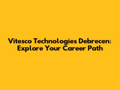 Vitesco Technologies Debrecen: Career Opportunities