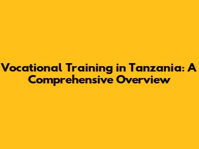 Vocational Training In Tanzania: A Comprehensive Overview