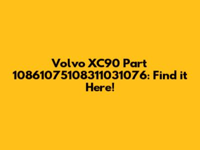 Sometimes, Volvo XC90 part number 10861075108311031076 might have been superseded by a newer part number. Dealerships and reputable online parts vendors can help you cross-reference the old number to the new one, ensuring you get the correct, up-to-date component.
