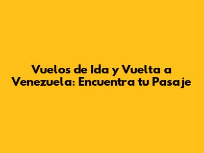 Vuelos De Ida Y Vuelta A Venezuela: Encuentra Tu Pasaje