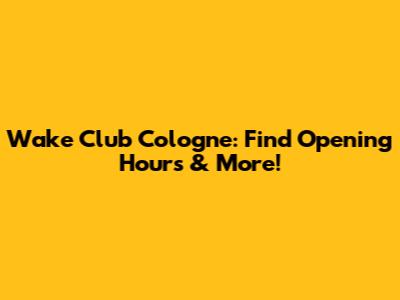 Wake Club Cologne: Find Opening Hours & More!