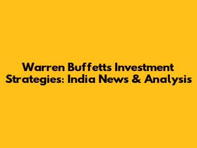 Warren Buffett's Investment Strategies: India News & Analysis