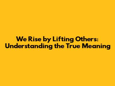 We Rise By Lifting Others: A Deeper Look