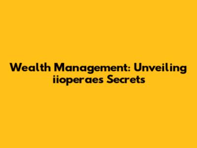 Wealth Management: Unveiling Iioperaes Secrets