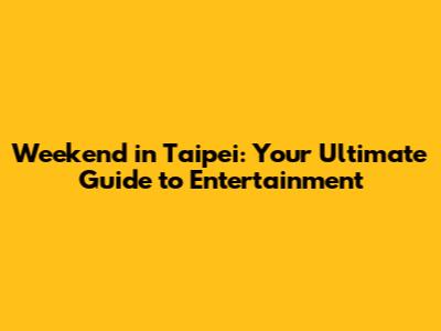 Weekend In Taipei: Your Ultimate Guide To Entertainment