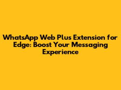 WhatsApp Web Plus: Supercharge Your Edge Browser!
