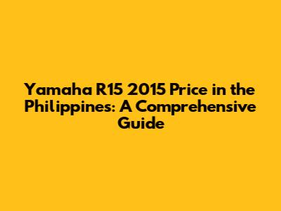 Yamaha R15 2015 Price In The Philippines: A Comprehensive Guide