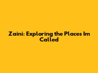 Zaini: Exploring The Places I'm Called