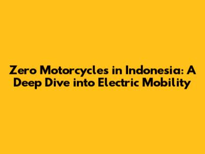 Zero Motorcycles in Indonesia: A Deep Dive into Electric Mobility